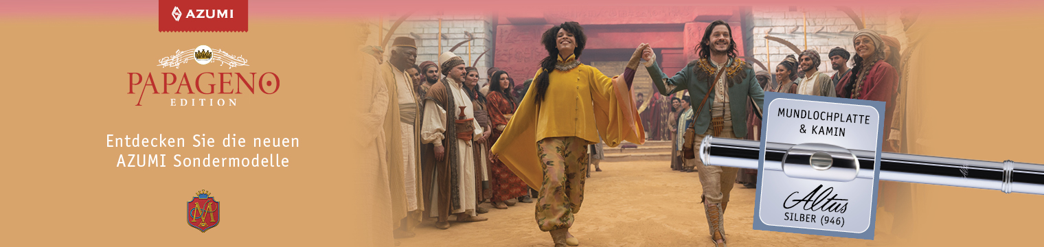 AZUMI lädt Sie herzlich dazu ein die einzigartigen Sondermodelle in der Z2 und S3 Serie zu entdecken. Die exklusive ALTUS Silber Legierung (mit einem Silberanteil von 94,6 %) für Mundlochplatte und Kamin erzeugt einen äußerst kraftvollen und farbenreichen Klangcharakter. Die hervorragenden Klangeigenschaften der wertvollen Modelle der Papageno Edition werden Sie beim Musizieren begeistern.