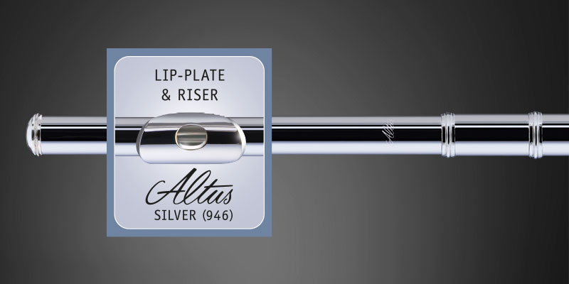 The lip-plate and riser are made of exclusive ALTUS silver with a 94.6% silver content and, in combination with the Sterling silver headjoint with Z-cut, offer an extremely powerful sound with fascinating tone colours for sophisticated sound production.