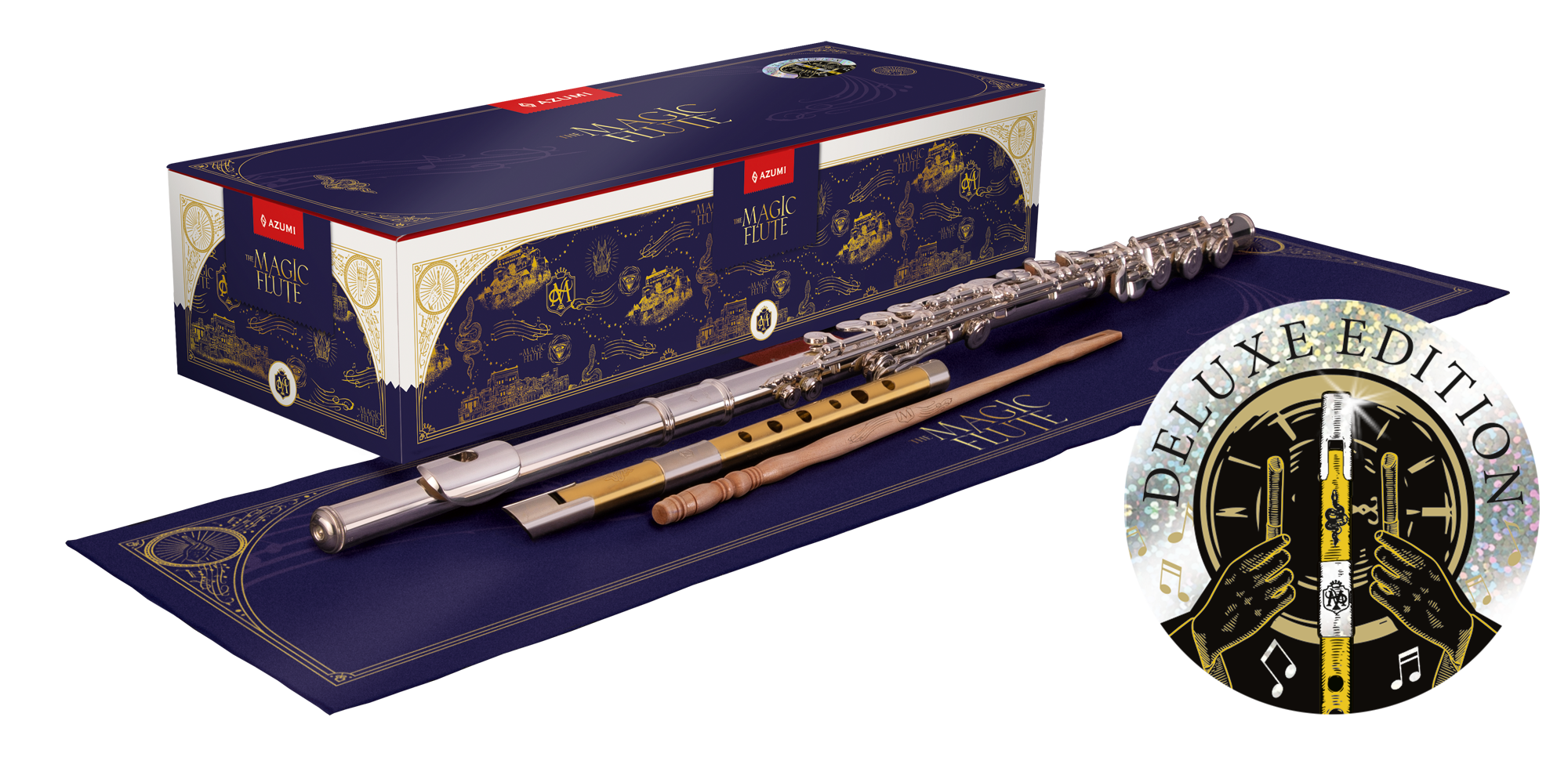 Der Lieferumfang jeder AZUMI Querflöte beinhaltet ein elegantes, hochwertiges mit Samt ausgeschlagenes Holzetui, eine passende, gefütterte Etuitasche sowie einem Wischerstab und Putztuch.